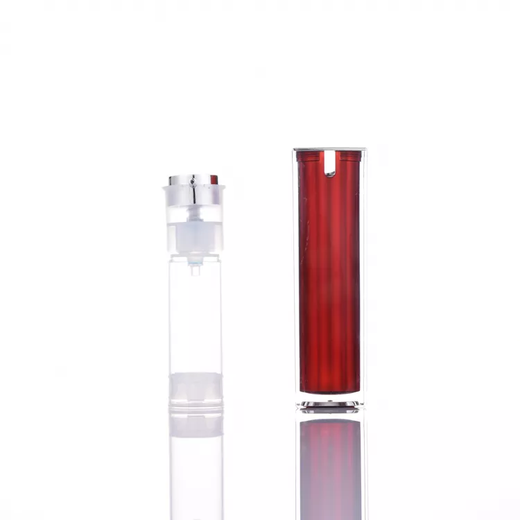 Fondazione bottiglia per contenitore per pompa senza ariaLa caratteristica airless rende l'erogazione senza sforzo. In altre parole, l'uso del nostro rotolo su una bottiglia di pompa a lozione airless non richiede alcun tubo per essere inserito nella bottiglia. Pertanto, questo non lascia dubbi sul non essere mai in grado di ottenere l'ultima goccia di prodotto dalla bottiglia. Soprattutto, questa bottiglia contiene una capacità di 15 ml 30 ml 50 ml 100 ml, ottimo per il campionamento o i prodotti per la cura della pelle personale.